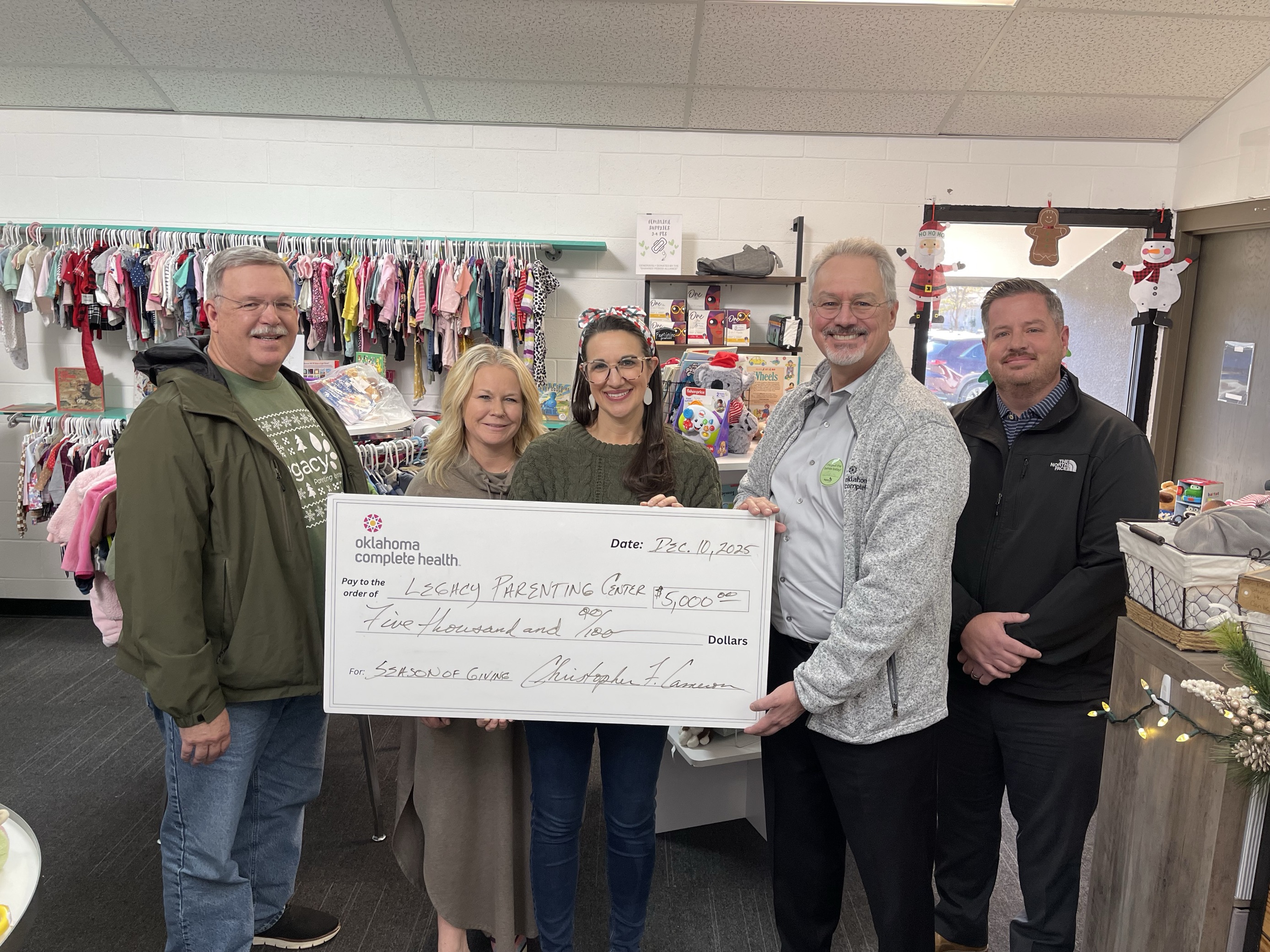 “We are blown away by the partnership that has formed with Oklahoma Complete Health through their Season of Giving,” said Legacy Parenting Center Executive Director Lacey Holt. “From countless volunteer hours at the center and special events, to this generous donation, it all adds to help us build stronger, healthier families through our Family Resource Center. Thank you, Oklahoma Complete Health, for all you do for Oklahoma families.”